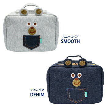 【メール便対応】マルチポーチ デニム&スムースベア・キャラクターおむつポーチ♪ オムツ 哺乳瓶 ウエットティッシュ おしりふき コンパクト 大きめ 大容量 おしゃれ かわいい 便利 軽量 軽い ブランド キャラクター トラベルポーチ マルチ
